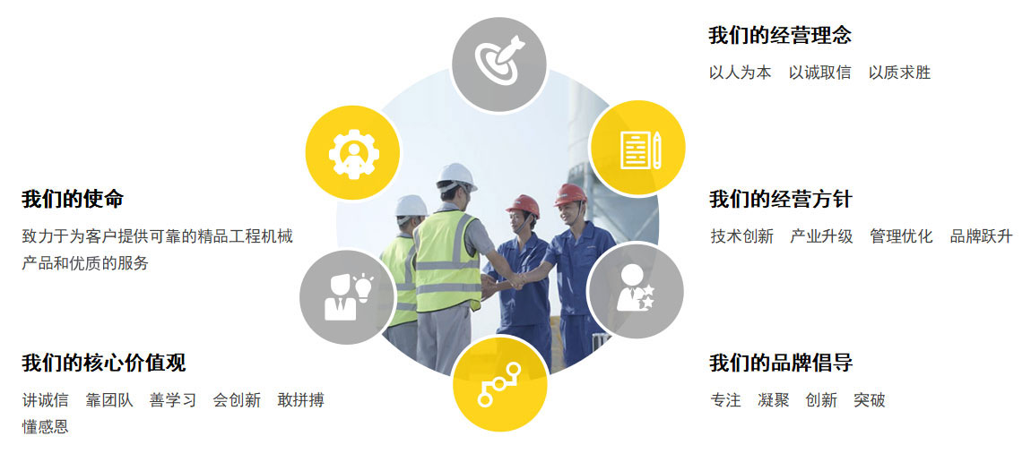 以員工、客戶、合作伙伴為晉工發展之根本,坦誠相待、互信互利,實現與多方的和諧共生、共贏。在不斷發展中自主創新,以客戶的需求為晉工發展創新的源動力,不斷推出性能優良、品質可靠的產品來贏得市場,也贏得更多客戶的信賴。做精品,負責任,與第三世界國家的建設同步。做優秀的民族品牌。
